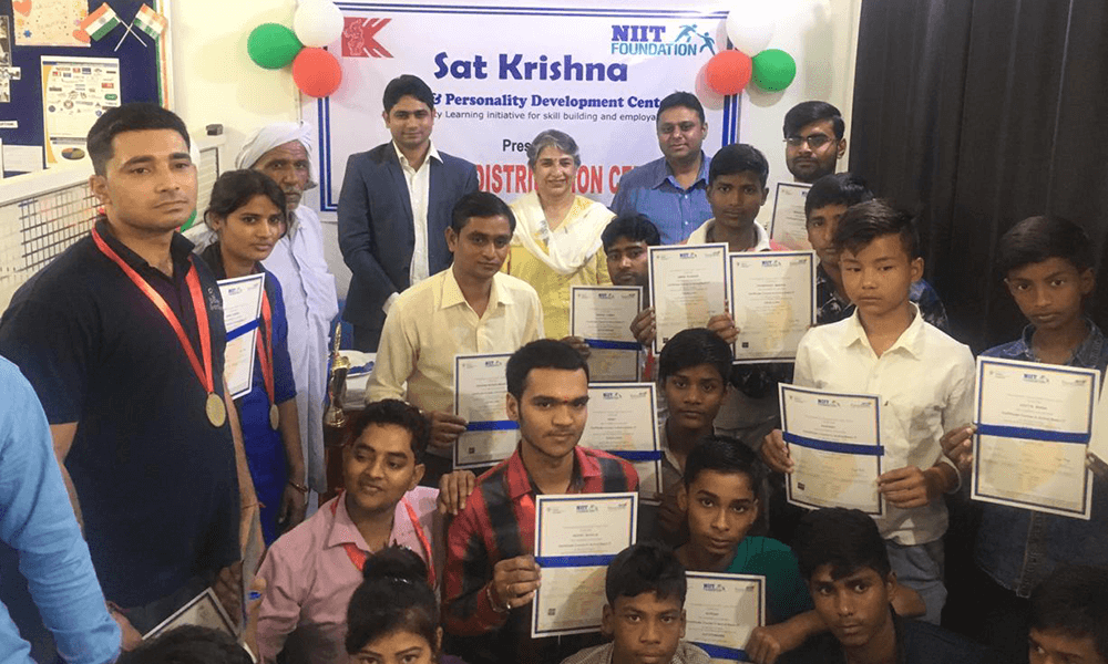 Sat Krishna Trust in partnership with NIIT foundation have established Skill and Personality development center in village Bans Hariya in Manesar area. This centre aimed to impart skill training and facilitate youths in getting gainful employment through training in IT, English, digital and financial literacy, Job Readiness Training with personality Development, Interview prep and Industry Visit. It provides ample exposure and placement support to every eligible youths to get placed in organized sector. It also provide and develop positive environment for students where students can develop their interpersonal skills also.